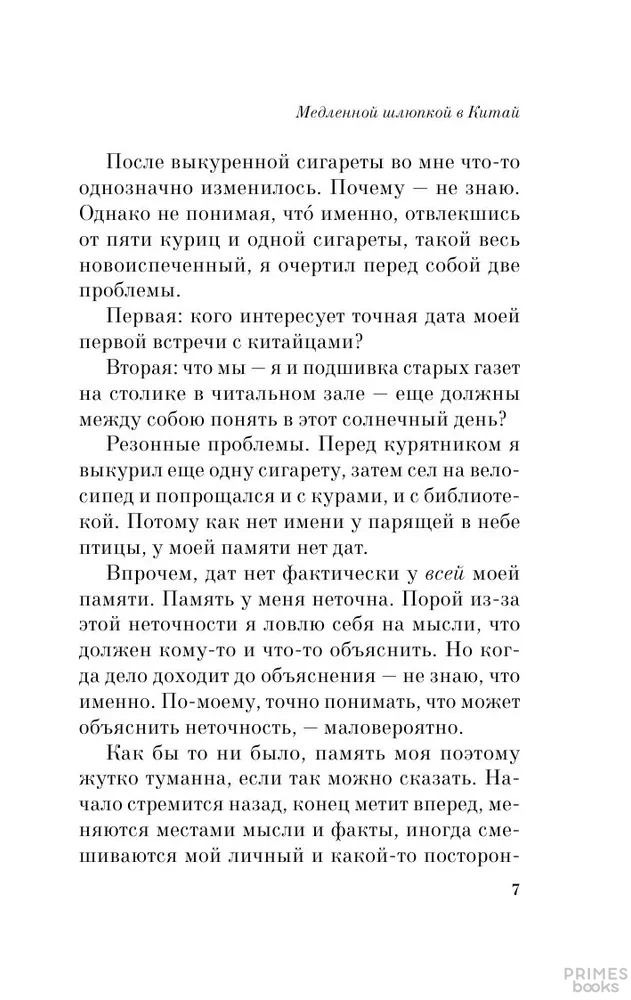 "Медленной шлюпкой в Китай" – первая книга короткой прозы японского классика современной мировой литературы Харуки Мураками. "В ней представлена большая часть того, что можно назвать моим миром", – говорил об этой книге сам автор. Безумный стилистический фейерверк, пронзительная нежность, трагизм и юмор мировосприятия, романтический сюрреализм будущего автора "Хроник Заводной Птицы" и "Послемрака".