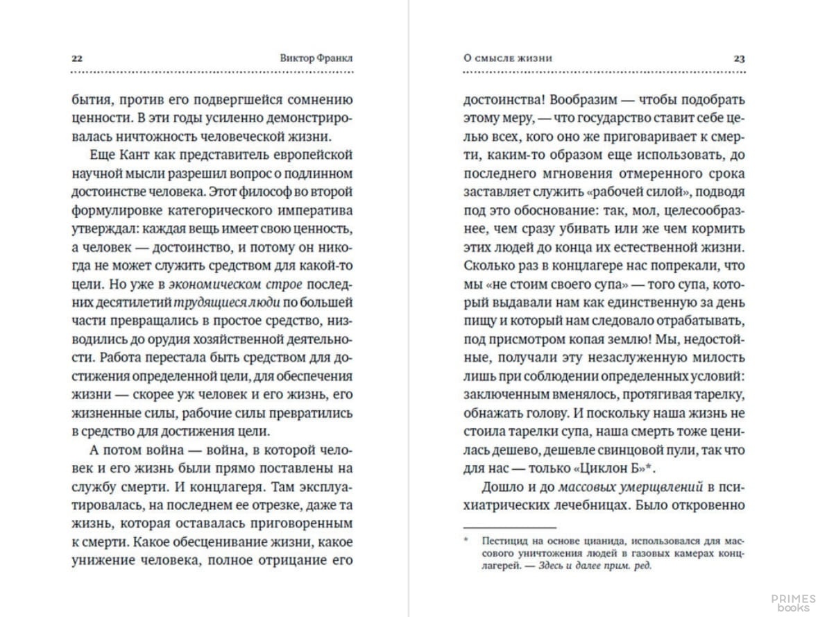 Название книги "О смысле жизни" точно и емко отражает суть и главную тему человеческих и научных поисков Виктора Франкла. В ней читатель найдет не издававшиеся прежде на русском языке три лекции, которые знаменитый психиатр и психотерапевт прочитал в 1946 году в Народном университете Вены. Это уникальное свидетельство бывшего узника концлагеря, прошедшего самые тяжелые испытания и сохранившего волю к жизни, – ценная часть наследия Виктора Франкла, труды которого во всем мире и в любые времена не теряют актуальности.